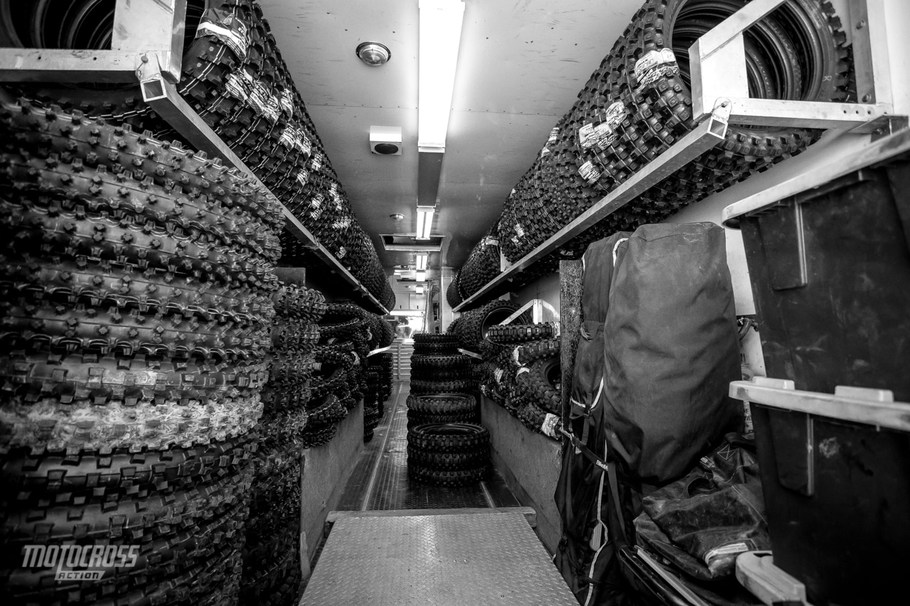 Chez MXA, les équipes optent souvent pour le duo Dunlop MX33, un choix qui s’explique par la polyvalence. Quand le tracé alterne portions dures et passages sablonneux, l’intermédiaire se révèle le partenaire le plus fiable. Sa structure supérieure s’accroche sur terrain meuble, tandis que sa gomme douce assure la tenue sur sol compact. Certes, il ne remporte pas la palme du pneu “idéal” mais il gomme les différences de terrain avec une efficacité rare. Lorsqu’il est disponible, on privilégie même l’ancien MX3S à l’avant, réputé pour son toucher précis, même si son usage sur sol dur risque d’entailler les crampons. Le pari est assumé. La sensation de pilotage prime sur la crainte d’une usure rapide, contrairement au MX33 qui, lui, offre une robustesse sans faille mais une réponse moins vivante.
